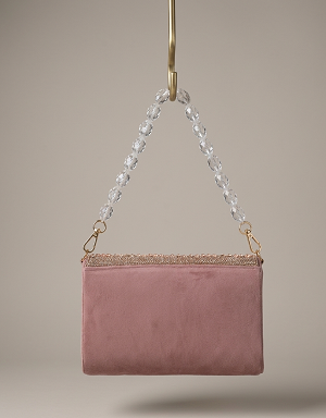 2. Carry your essentials in style with this trendy beaded clutch bag. Made of fabulous cruelty-free cloth material and synthetic stone work this medium sized piece offers one section for the organisation of one's items.
