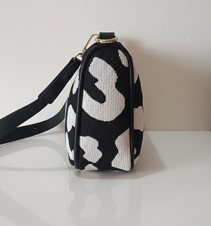2. Carry your essentials in style with this trendy sling bag. Made of fabulous cruelty-free cloth material and synthetic PU leather this medium sized piece offers one section for the organisation of one's items.