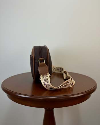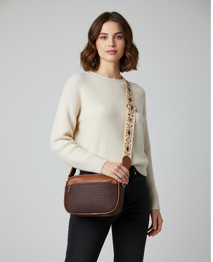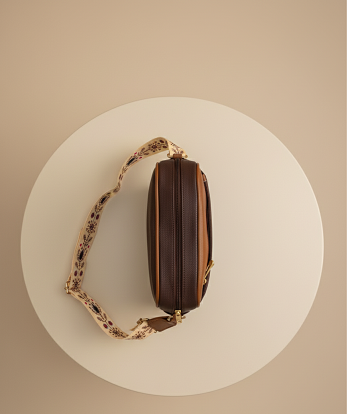2. Carry your essentials in style with this trendy sling bag. Made of fabulous cruelty-free cloth material and PU leather this medium sized piece offers one section for the organisation of one's items.
