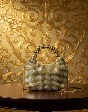 2. Carry your essentials in style with this trendy sling bag. Made of fabulous cruelty-free cloth material and synthetic golden stone this medium sized piece offers one section for the organisation of one's items.
