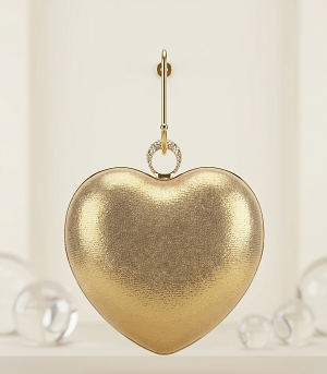 2. Carry your essentials in style with this trendy heart shape clutch bag. Made of fabulous cruelty-free cloth material and synthetic stone this medium sized piece offers one section for the organisation of one's items.