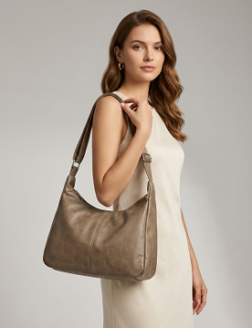 2. Carry your essentials in style with this trendy hobo bag. Made of fabulous cruelty-free cloth material and synthetic PU leather this medium sized piece offers one section for the organisation of one's items.