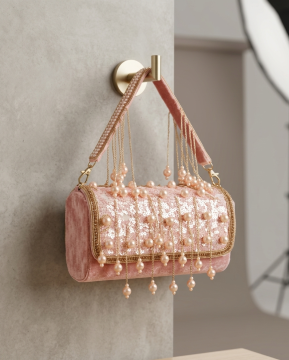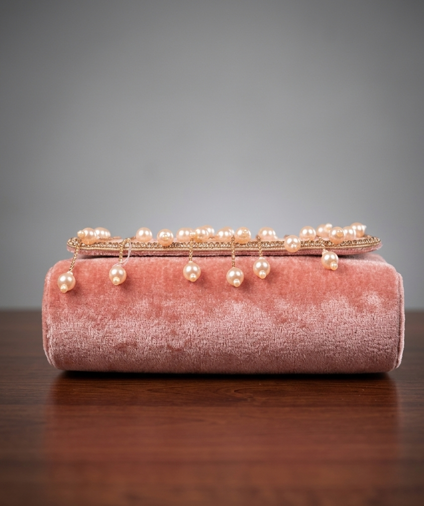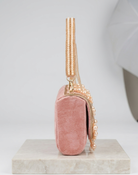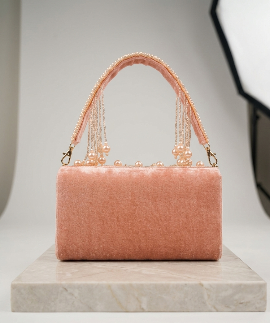 2. Carry your essentials in style with this trendy handheld bag. Made of fabulous cruelty-free cloth material and synthetic velvet this medium sized piece offers one section for the organisation of one's items.