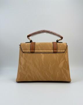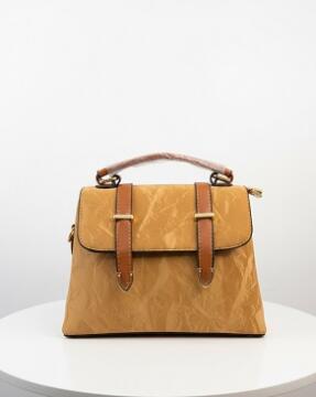 2. Carry your essentials in style with this trendy satchel bag. Made of fabulous cruelty-free cloth material and synthetic PU leather this medium sized piece offers one section for the organisation of one's items.