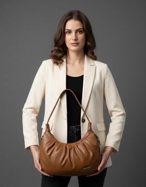2. Carry your essentials in style with this trendy tancolor bag. Made of fabulous cruelty-free cloth material and synthetic PU leather this medium sized piece offers one section for the organisation of one's items.